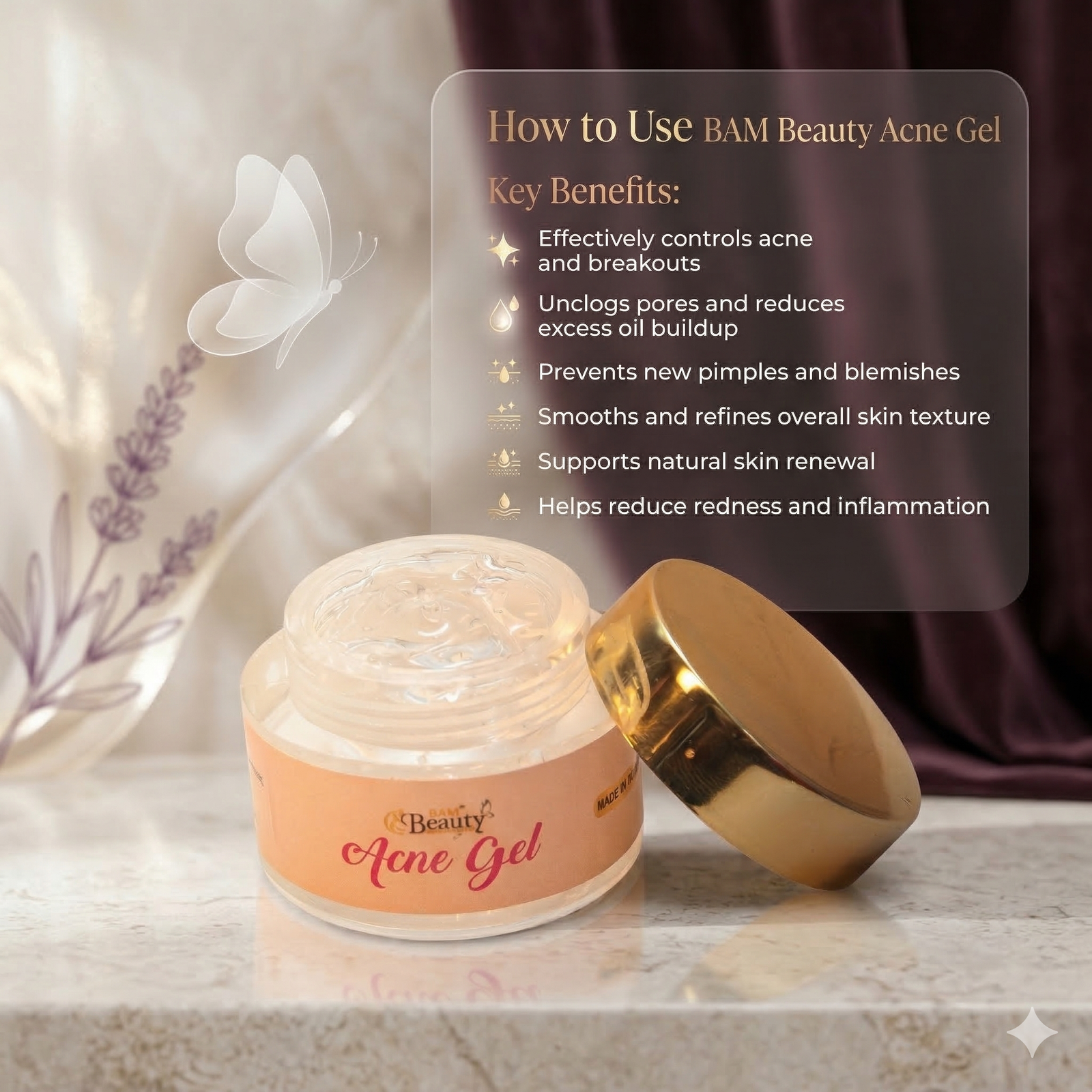 - Acne Gel – targeted treatment to reduce pimples & inflammation