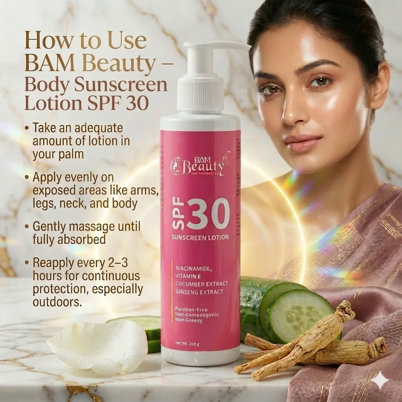 How to Use BAM BEAUTY – Body Sunscreen Lotion SPF 30